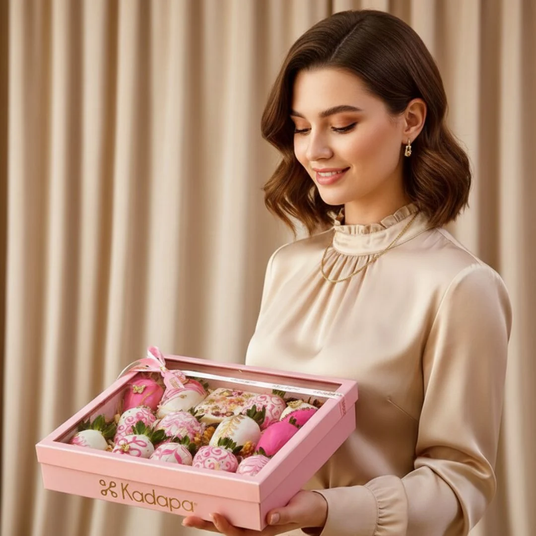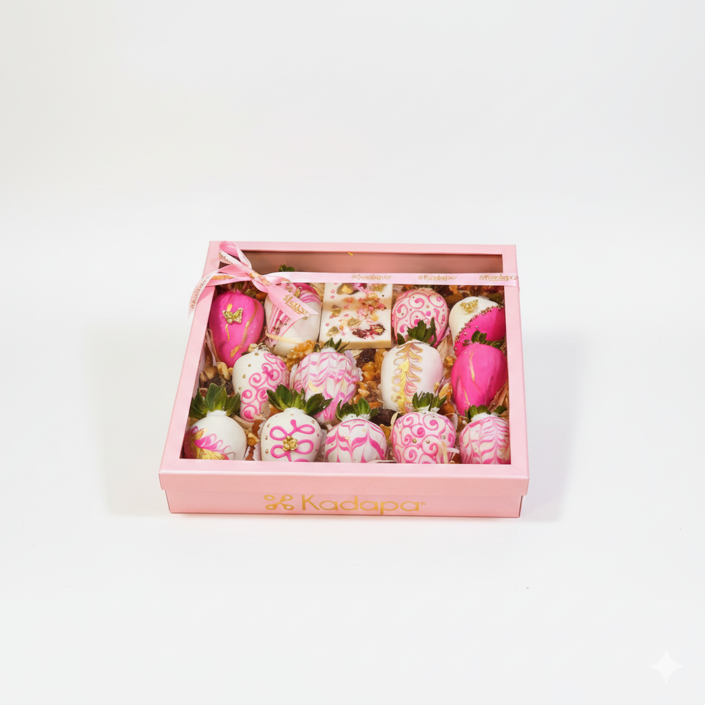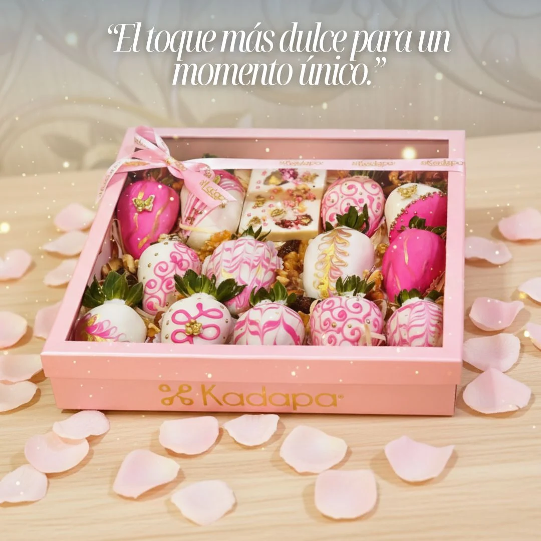 Una delicada selección de fresas cubiertas de chocolate y acompañadas de frutos secos. El regalo perfecto para sorprender con estilo.